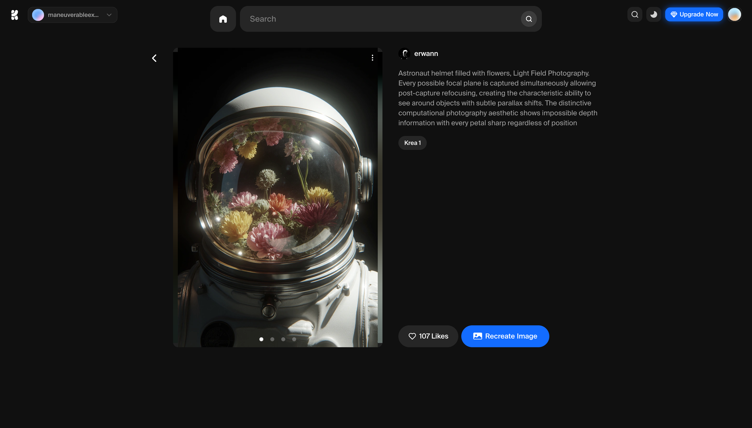 Безусловно, в этой заметке мы собрали только интересные варианты, но новые промпты появляются каждый день, ведь у Krea есть большое сообщество. Посмотреть работы других пользователей и позаимствовать их промпты можно здесь: krea.ai/feed. В этом разделе публикуются не только сгенерированные изображения, но и видео.